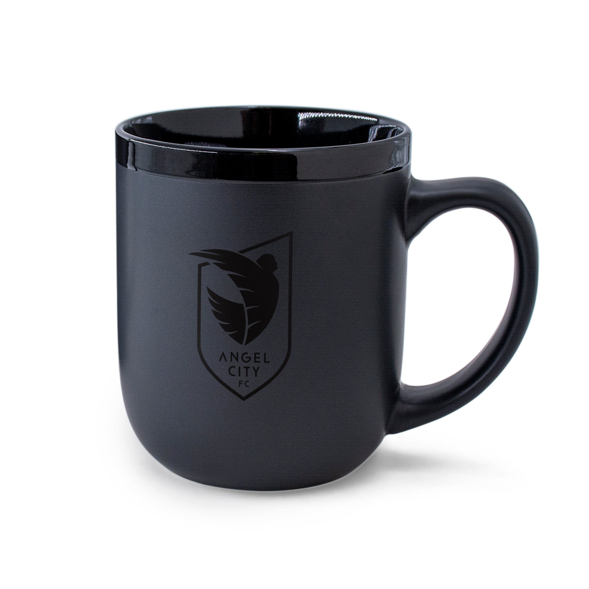 Presentamos la taza de cerámica negra mate de 453 ml del Angel City FC: ¡la compañera perfecta para cualquier aficionado al fútbol y amante del café! Esta elegante y estilosa taza luce el logo del ACFC brillante a un tono en un lado y el escudo negro a un tono en el otro.