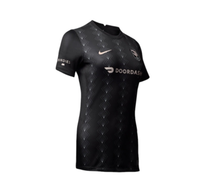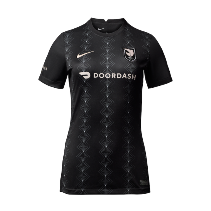 La primera camiseta de local del Angel City Football Club para la temporada 2022, Dawn, está confeccionada por Nike con fibras de poliéster 100 % recicladas y sostenibles. Cuenta con paneles laterales transpirables, tecnología Nike Dri-FIT y un cuello único. La camiseta es principalmente negra con los colores personalizados del ACFC, Sol Rosa y detalles de Armour. El color del escudo del Angel City FC, el logo de Nike y los patrocinadores es Sol Rosa, y el estampado geométrico del amanecer es Armour.