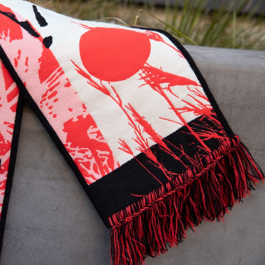 Una carta de amor a la herencia japonesa de la diseñadora Faith-Ann Young, la bufanda del mes AANHPI de este año simboliza la resiliencia, la esperanza y la fortaleza dentro de la comunidad asiático-estadounidense y la ciudad de Los Ángeles.