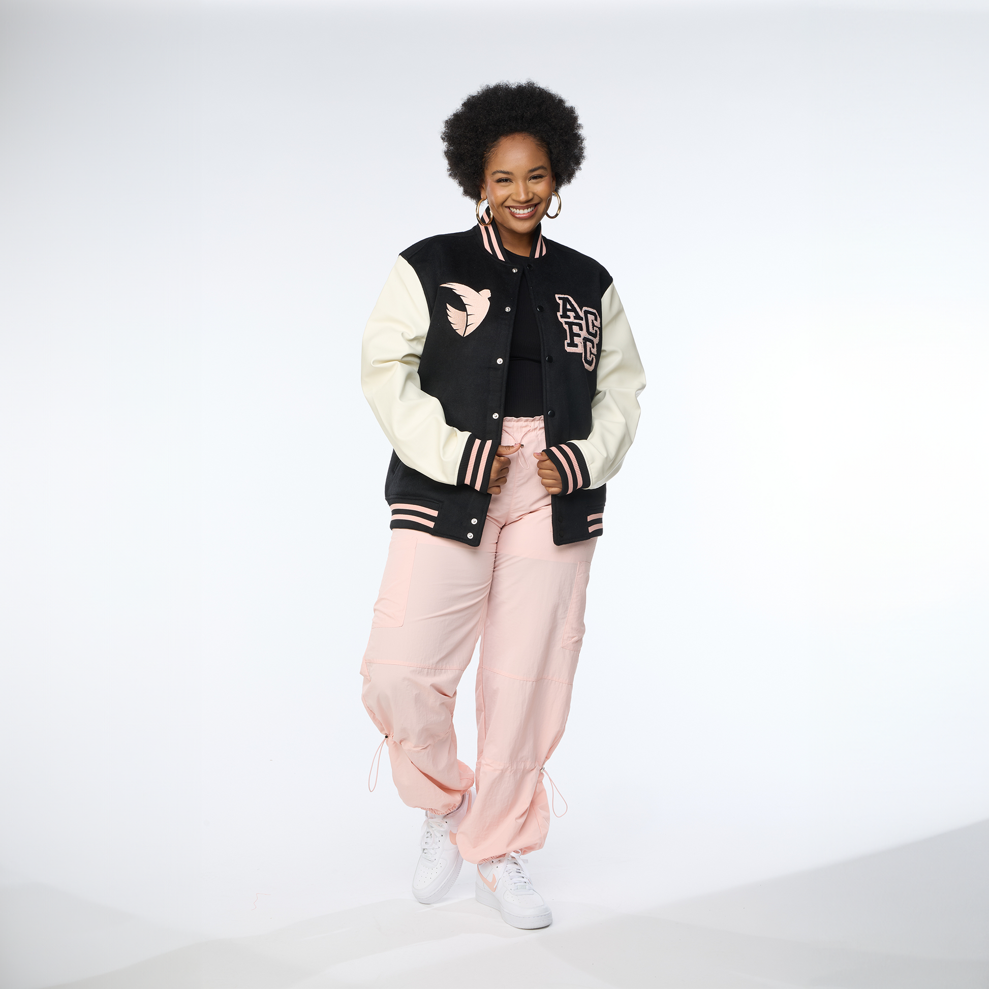 ¡Prepárate para apoyar a tu equipo del ACFC con nuestra chaqueta universitaria unisex Angel City FC de lana negra! Confeccionada con mangas de piel sintética blanca y un elegante cuerpo de lana negra, esta chaqueta luce un diseño universitario clásico con cuello y dobladillo acanalados para un ajuste cómodo. Luce un parche de chenilla premium del ACFC en la parte delantera, un emblema del Sol Rosa bordado y un detalle de chenilla del Angel City Football Club en la espalda, con el emblema del Sol Rosa bordado. Es la prenda perfecta para lucir tu orgullo por el equipo con estilo.