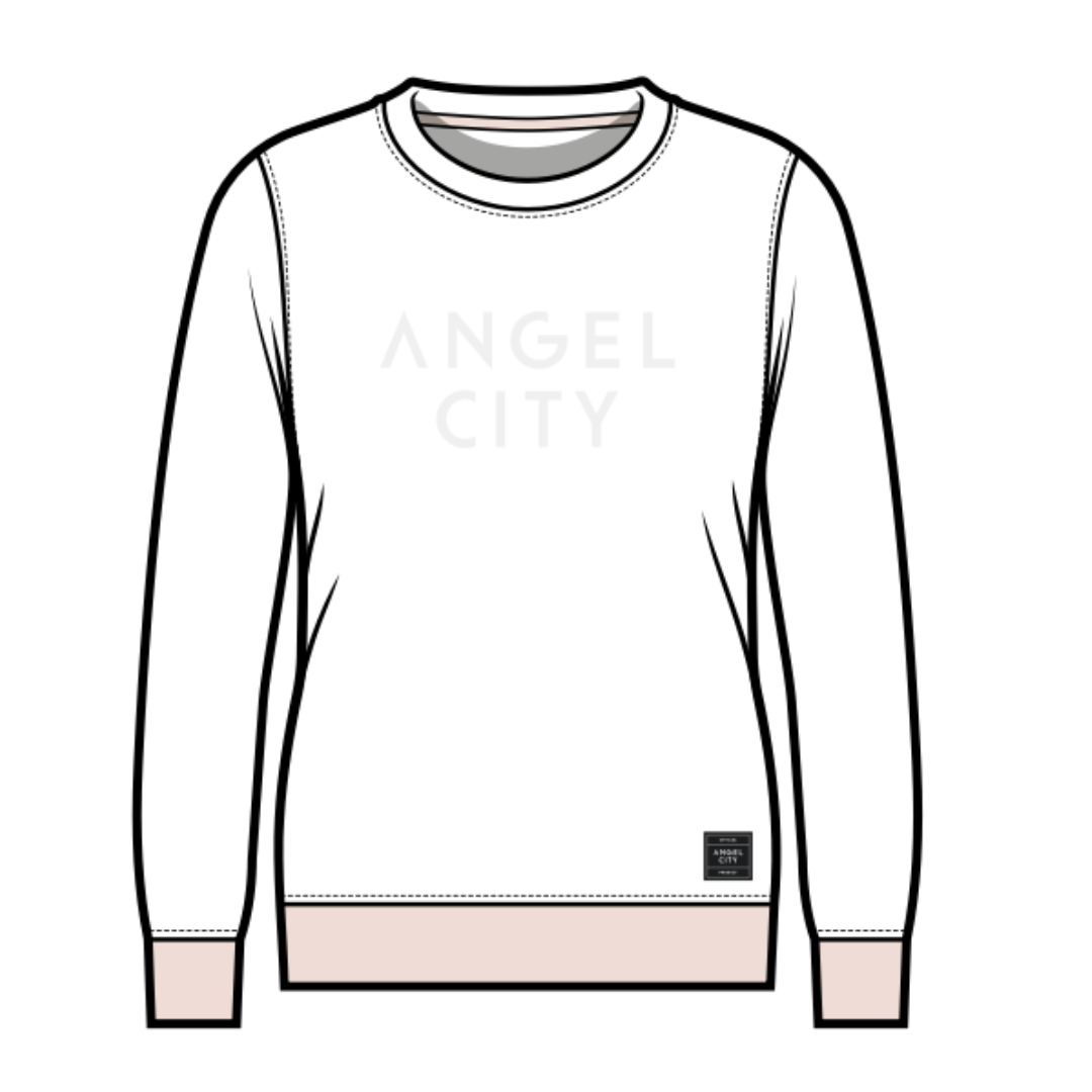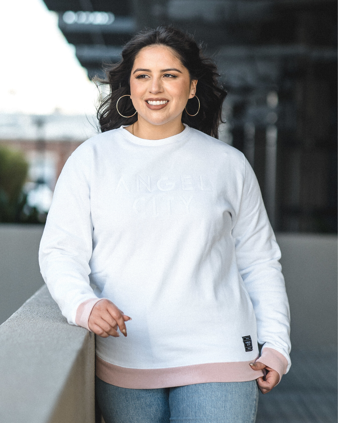 Angel City FC Suéter unisex con cuello redondo bordado en tonos blancos con marca de palabras