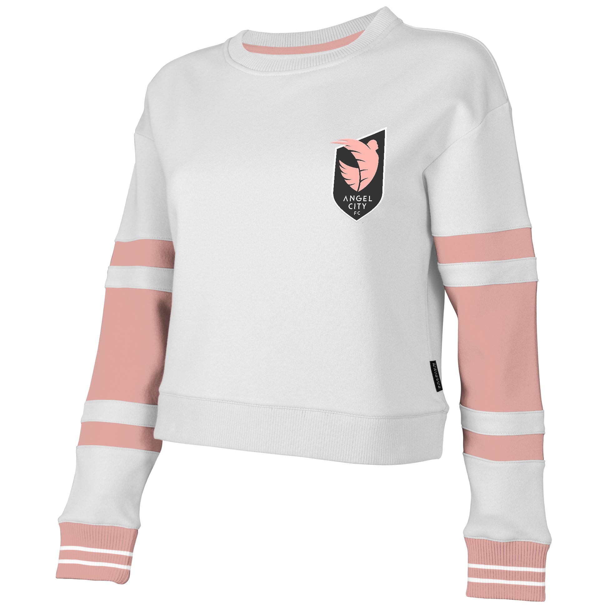 Mejora tu estilo para el día del partido con nuestra sudadera corta de cuello redondo para mujer del Angel City FC, con mangas largas y un aplique del escudo del equipo. Las mangas y el ribete interior del cuello están confeccionados en el color Sol Rosa del Angel City FC.