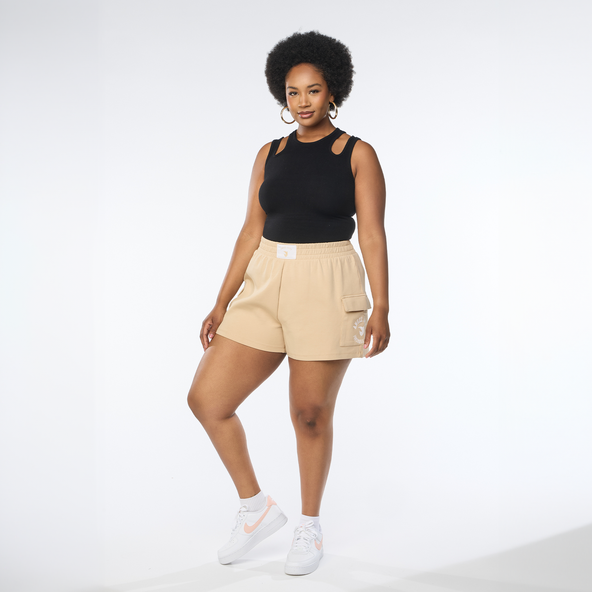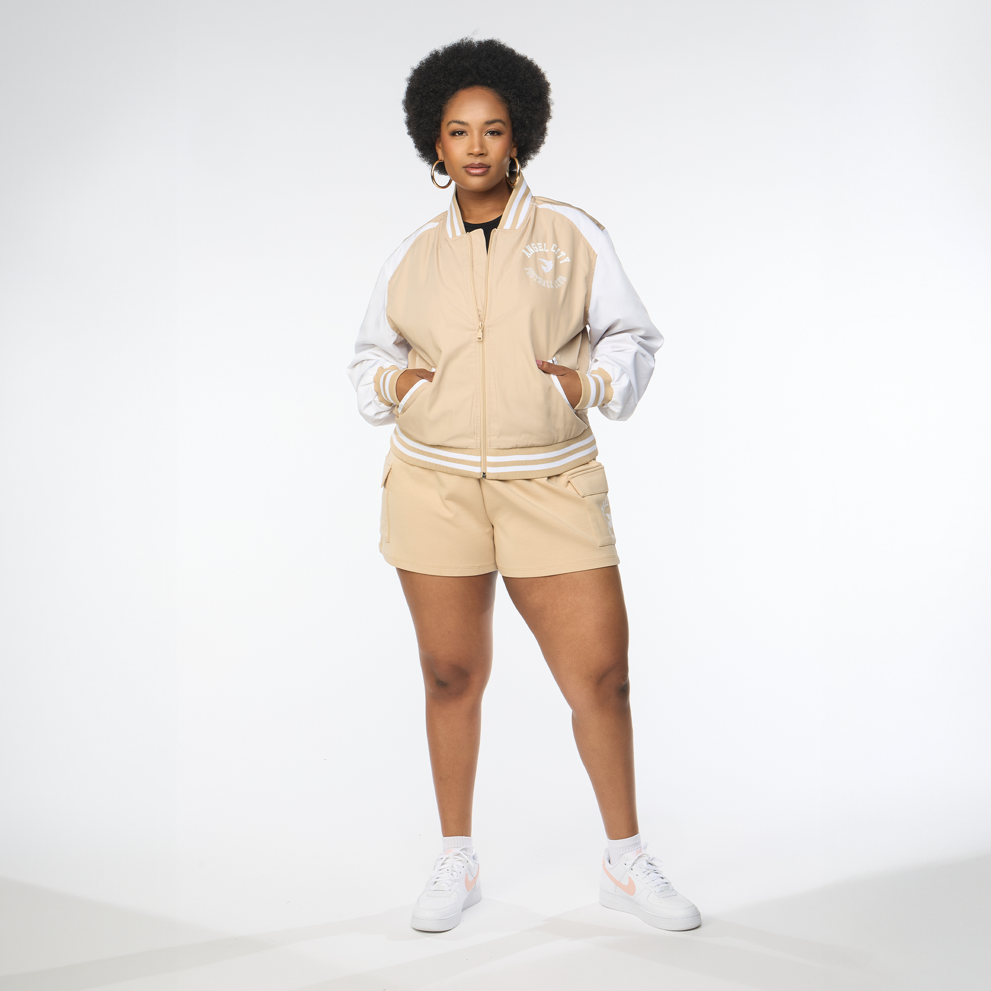 Pantalones cortos de punto doble en tonos beige para mujer Angel City FC x Wear by Erin Andrews