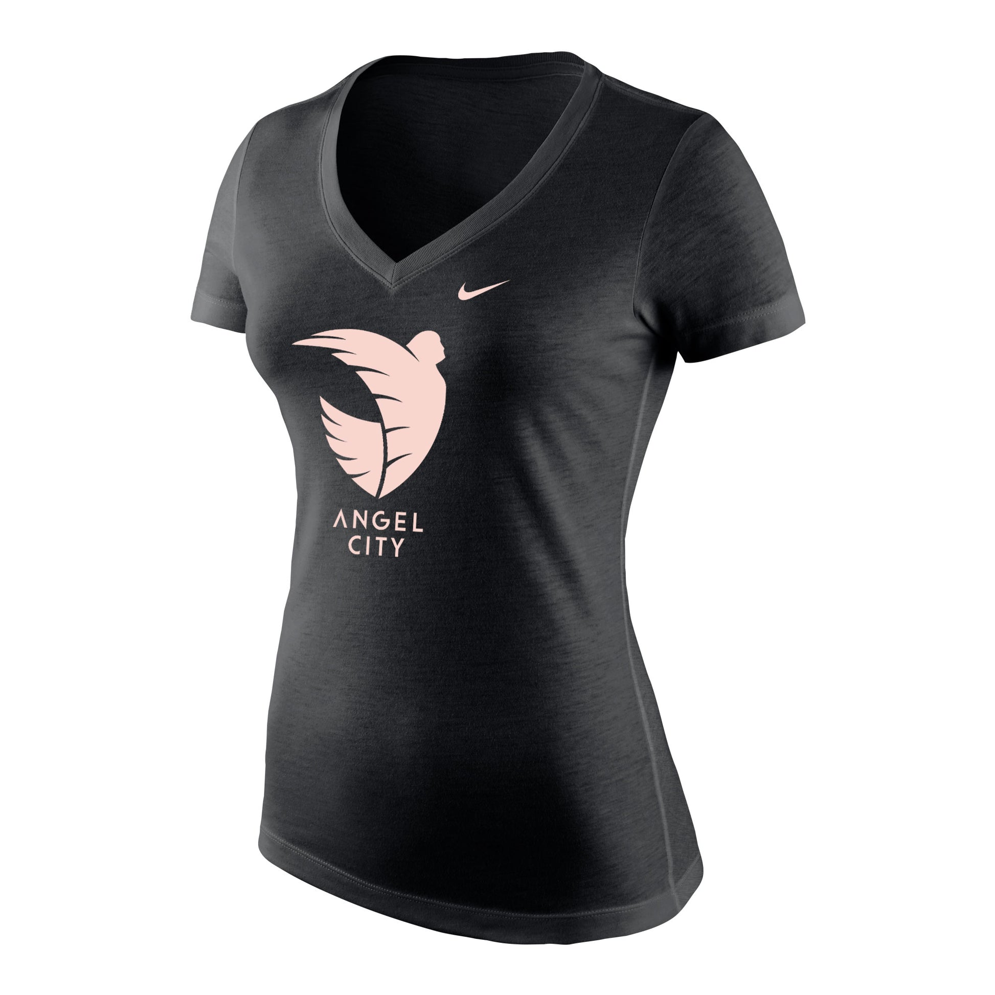 Angel City Nike Mujer Sol Rosa Logo Negro Heather Tri-blend Mid-V Camiseta
