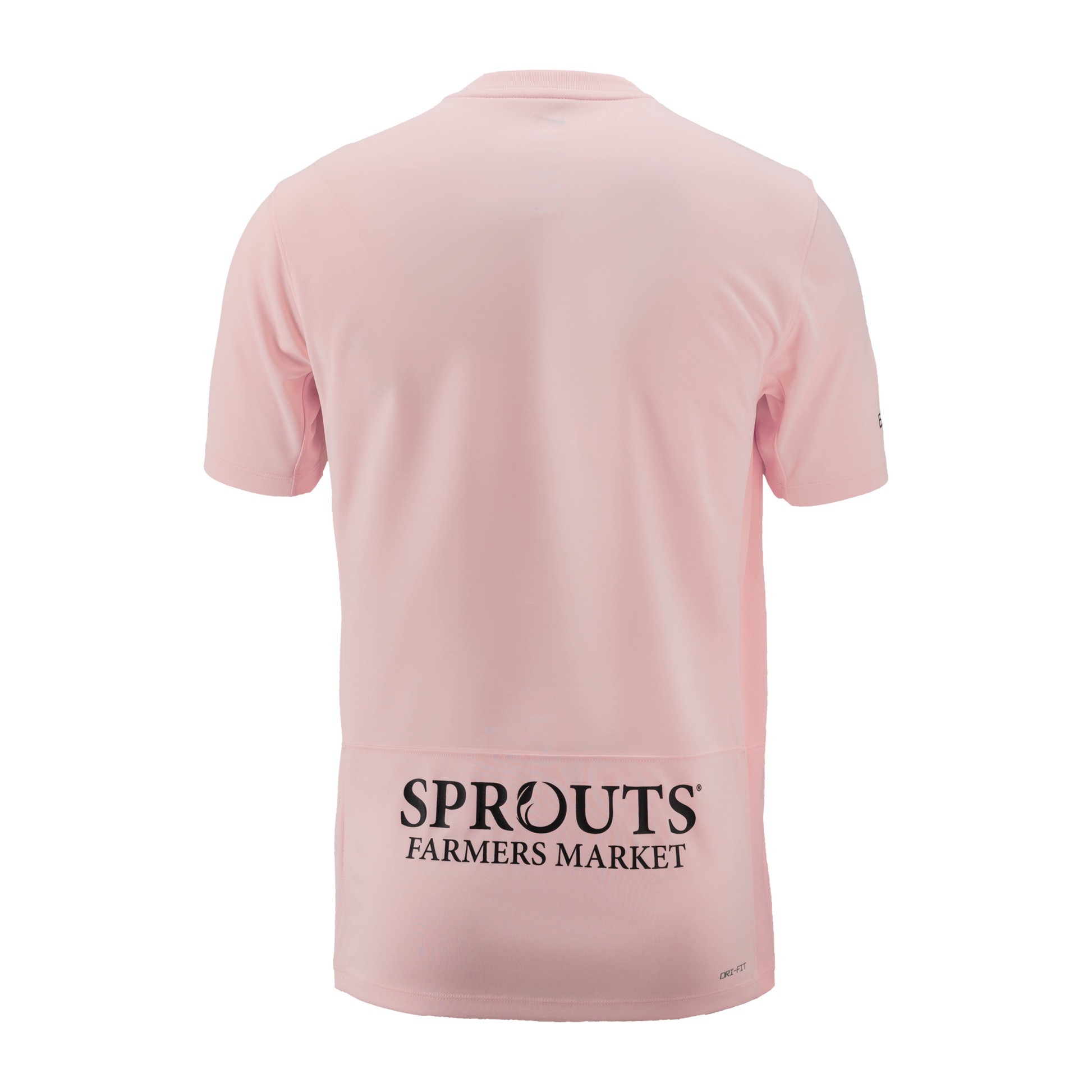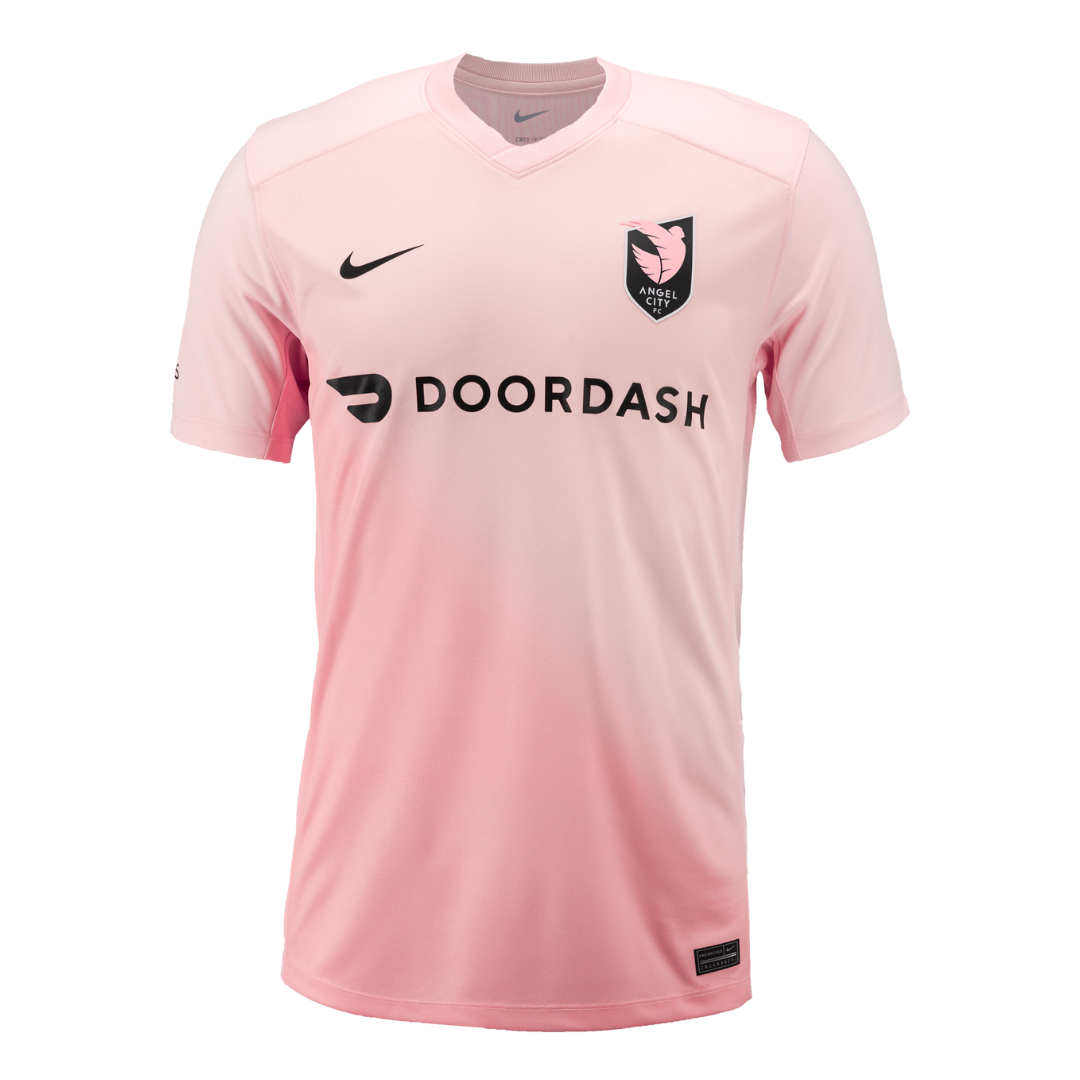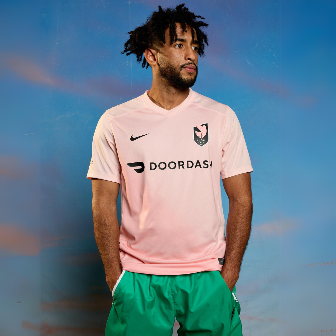 This secondary kit in a Sol Rosa gradient showcases the joy and optimism embodied by the players on the pitch and our community. The sunrise gradient across the kit illustrates that the sun in LA rises and shines each day regardless of the outcome. The Sol kit celebrates the relentless joy at the core of Angel City’s club, team, and community.