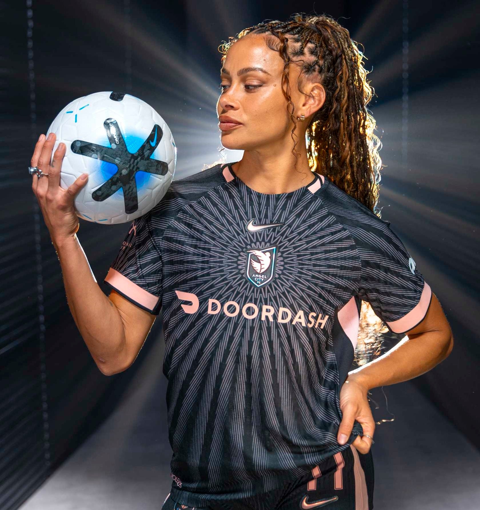 A new look. Designed with edge, for the club and city that refuse to play it safe. Angel City is the contrast of grace and grit, elegance and fire, light and dark. With a new kit that is poised for the runway, but raw enough for the pitch.