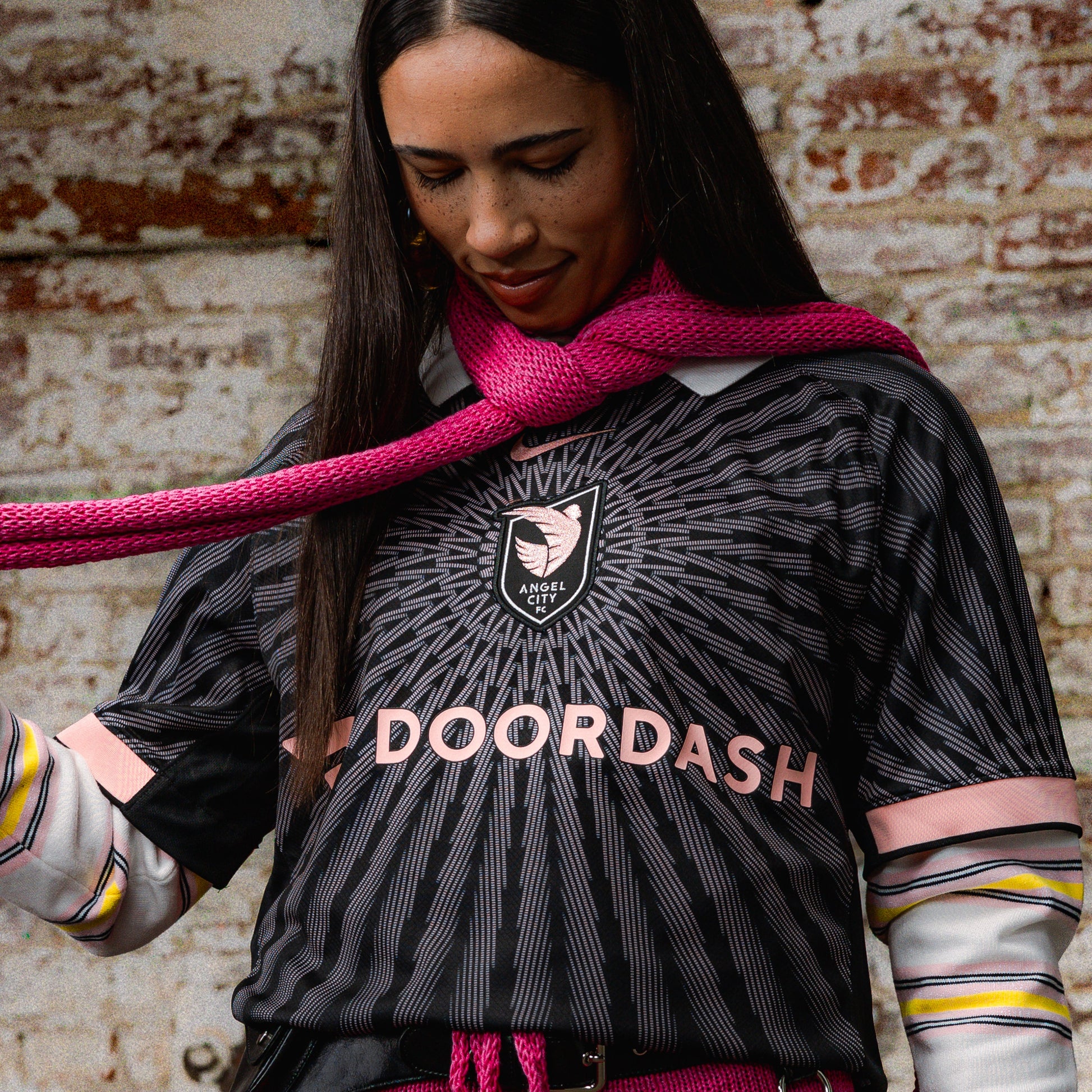 A new look. Designed with edge, for the club and city that refuse to play it safe. Angel City is the contrast of grace and grit, elegance and fire, light and dark. With a new kit that is poised for the runway, but raw enough for the pitch.