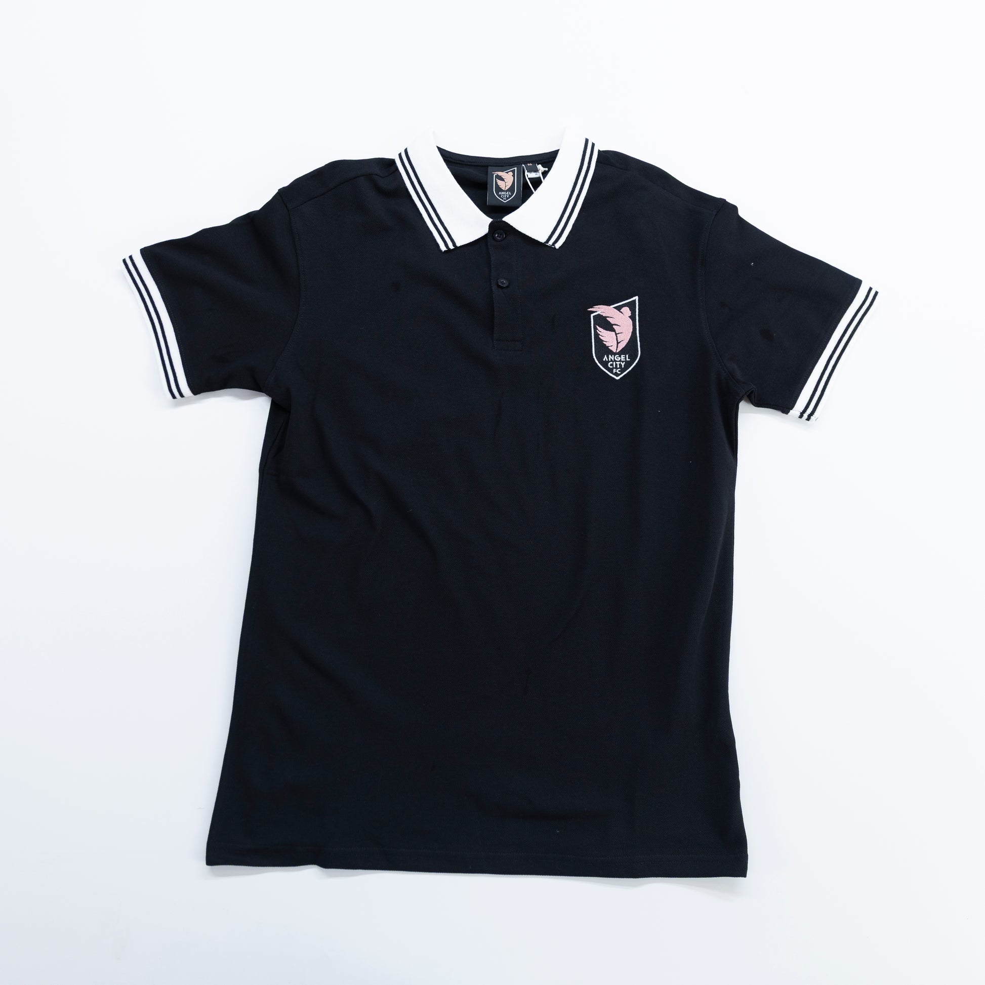 Angel City FC Mens Black and White Pique Polo with Embroidered Crest