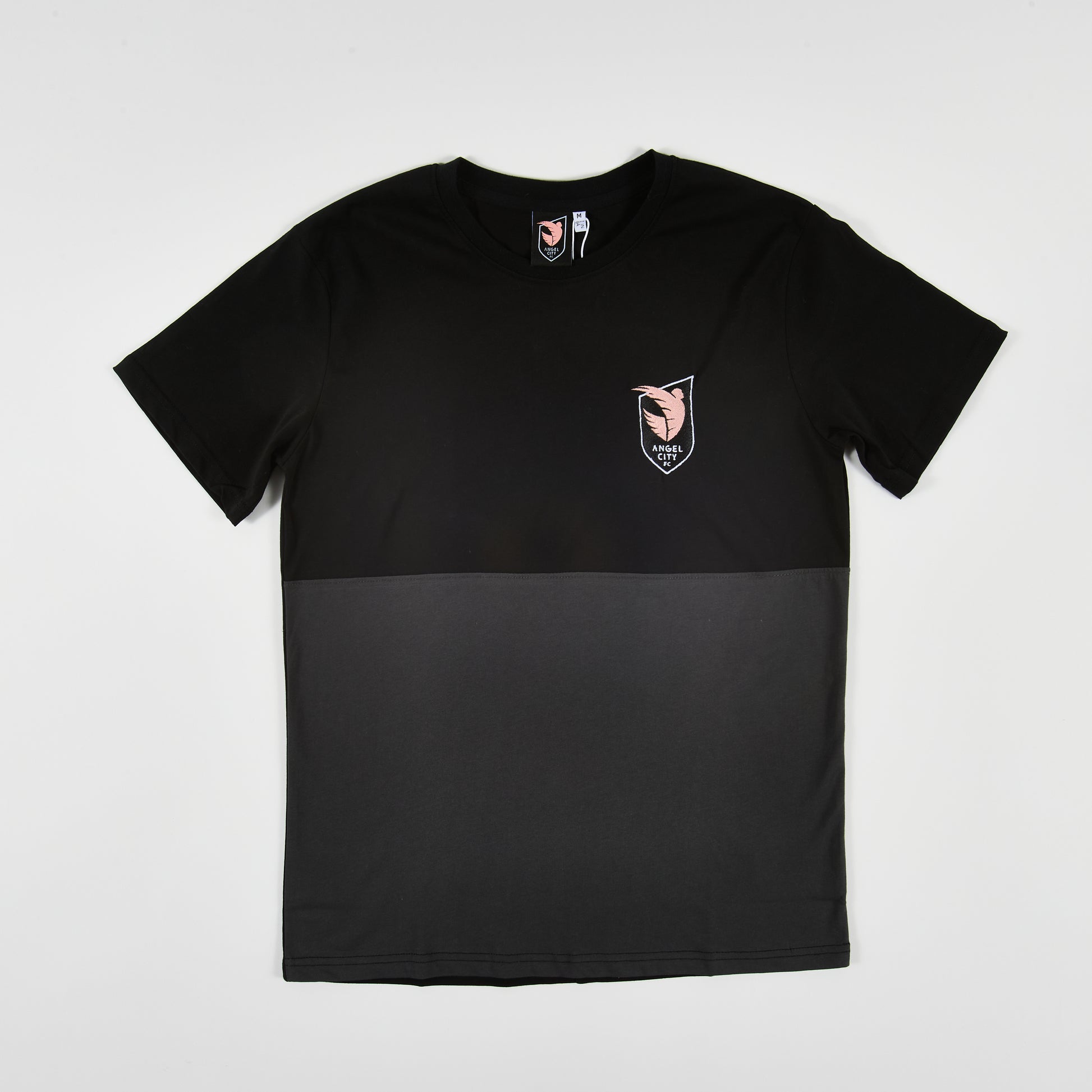 Angel City FC Mens Black Block Relaxed Short-Sleeve T-Shirt with Embroidered Crest and Puff Emblem