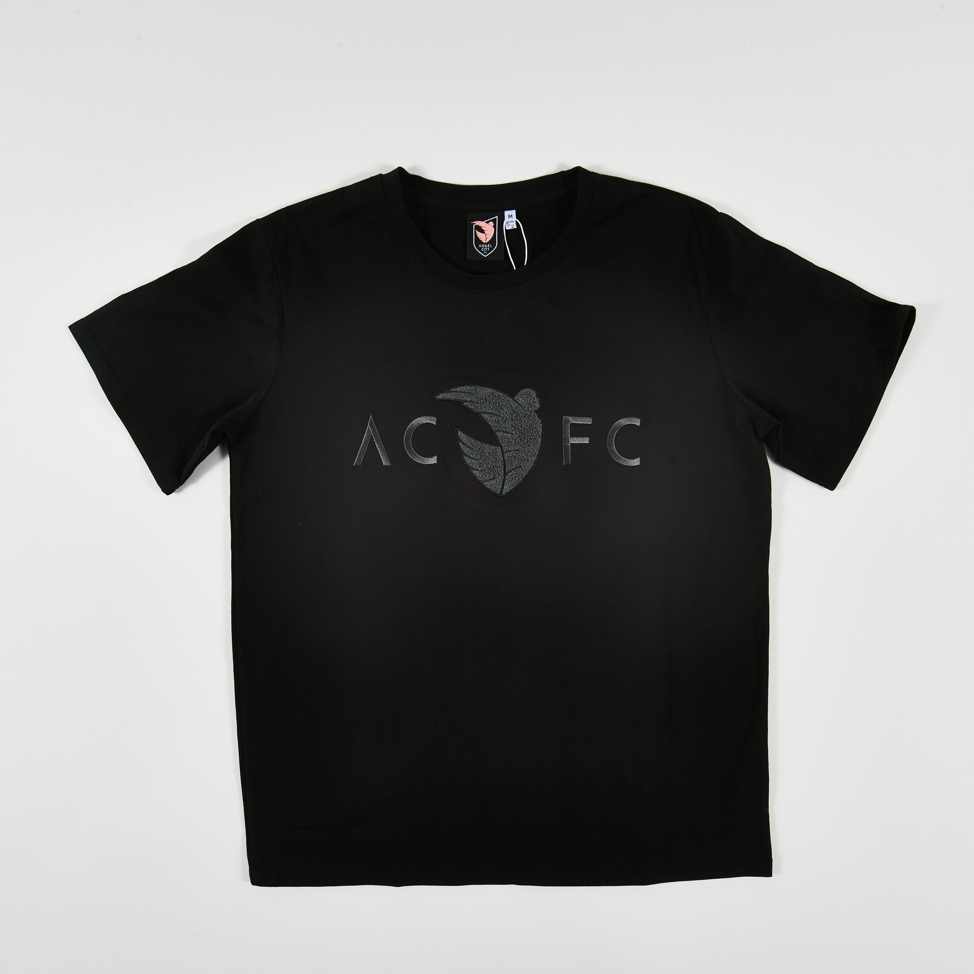 Angel City FC Mens Heavy Relaxed Black Short-Sleeve T-Shirt with Tonal Terry Wordmark and Emblem