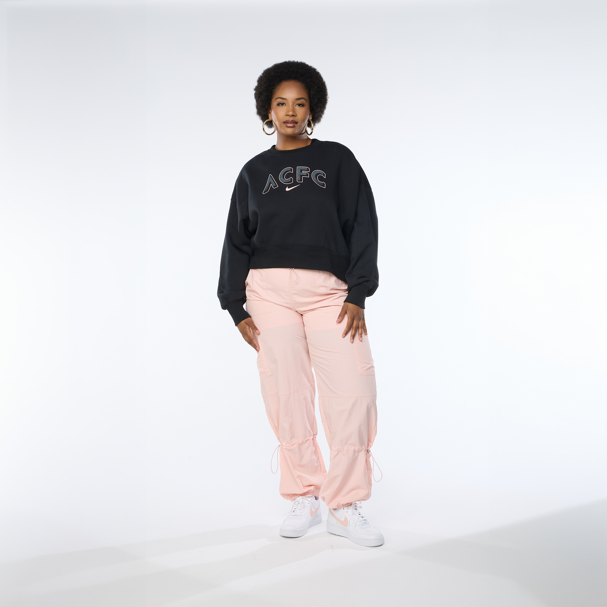 Angel City FC Nike Women's Black Phoenix Fleece Oversized Crew with ACFC Wordmark