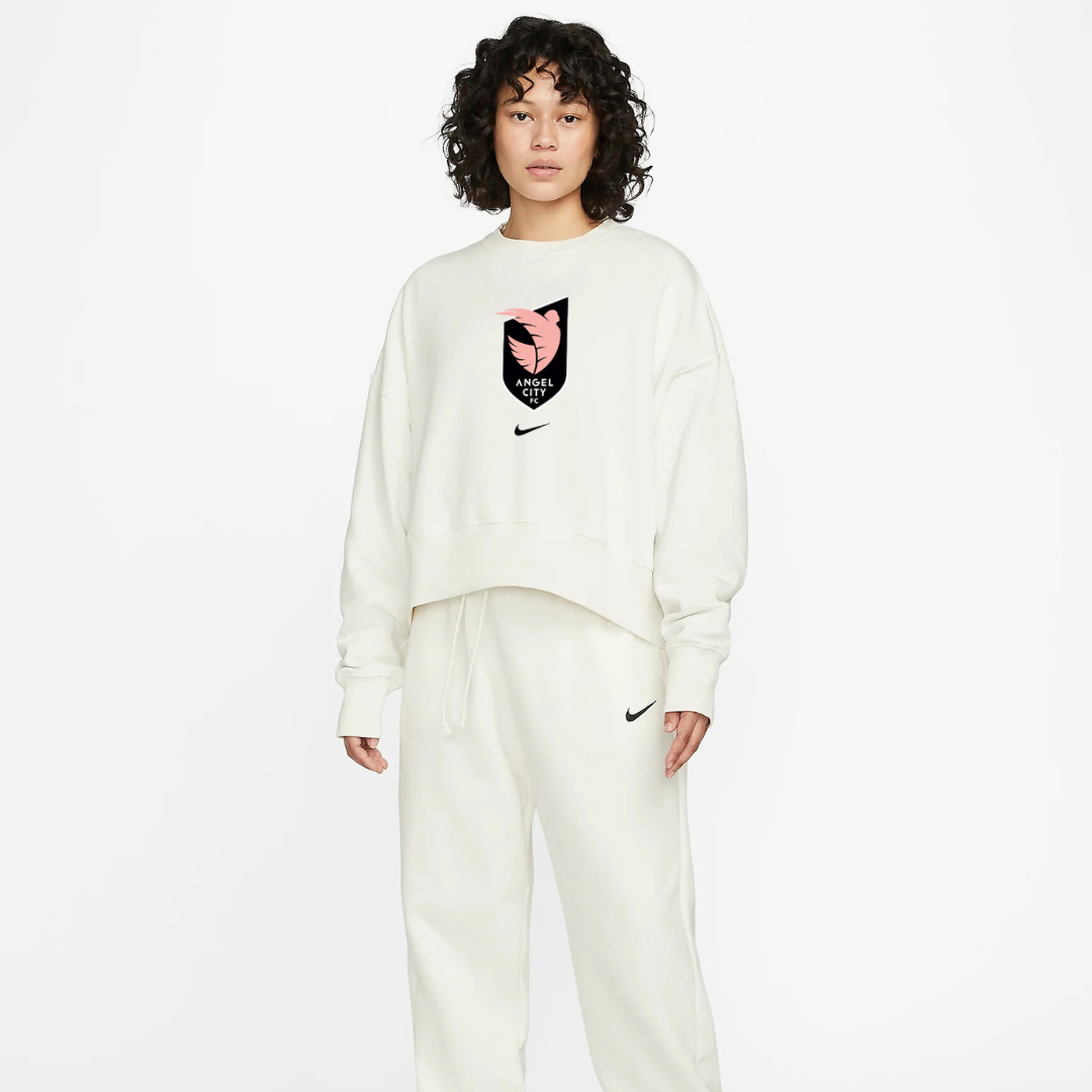 Angel City FC Nike Women's Cream Phoenix Fleece Oversized Crew with ACFC Crest