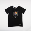 A classic silhouette with a pride-forward twist. This black ringer tee is finished with crisp contrast trim and our Pride crest—an everyday essential that celebrates identity and movement.